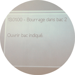 | 13.0 | Bourrage papier | Ce code ne précise pas l’endroit d’où provient l’erreur. Ce problème provient de l'entrainement du papier (galet papier) | Quand l’imprimante n’entraîne pas de papier |